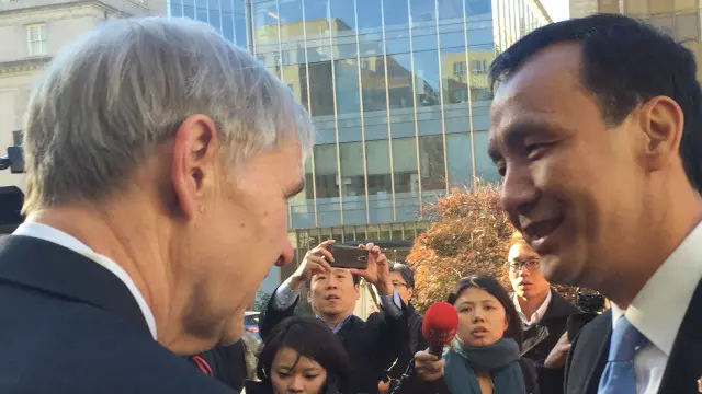 朱立伦周五(11月13日)早上抵达布鲁金斯学会,与美国专家会谈。会议由布鲁金斯学会资深研究员、前美国在台协会(AIT)理事主席卜睿哲(Richard Bush III)主持。
