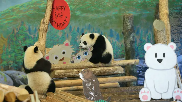 当日,加拿大多伦多动物园举办生日聚会,为在这里出生的龙凤胎熊猫宝宝“加盼盼”与“加悦悦”庆祝周岁。这对首次出生在加拿大的熊猫宝宝,由2013年3月从中国来到多伦多动物园的雌性大熊猫“二顺”于2015年10月13日产下。