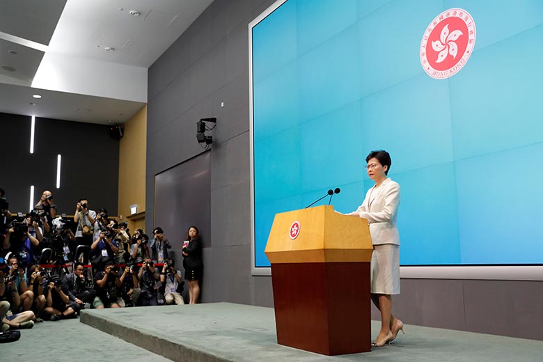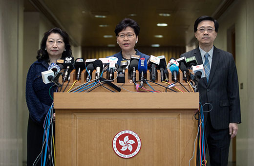 行政长官林郑月娥无意撤回草案,强调已有足够保障,她回应蕴酿罢工罢课时,反问“鼓吹激烈行为对香港社会有甚么好处”。香港行政长官办公室以及律政司司长办公室的职员收到恐吓电话。政府消息人士向BBC中文透露,这通电话要求林郑月娥在24小时内撤回条例,否则会杀害她及其家人。