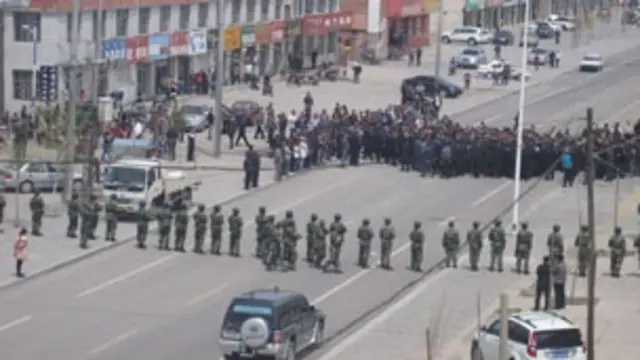 图像加注文字,内蒙西乌旗居民在街上与武警对峙(博讯图)