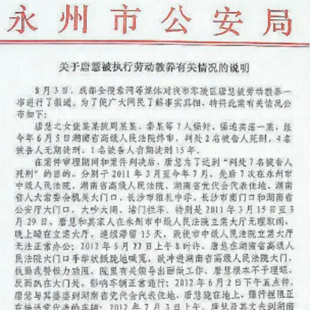 记者从湖南省劳动教养管理委员会办公室获悉,唐慧的劳动教养决定经复议被依法撤销。(8月10日中国广播网)