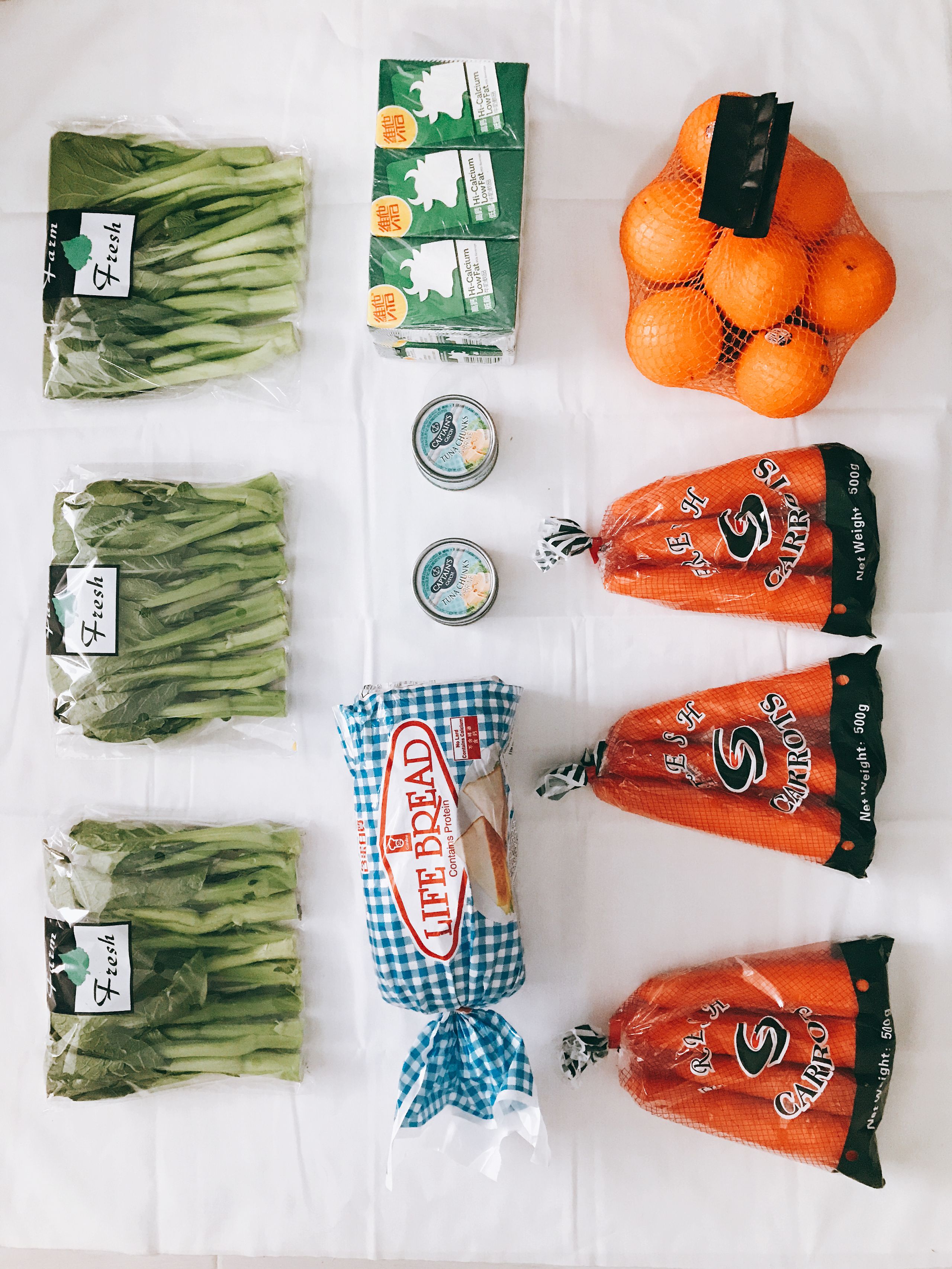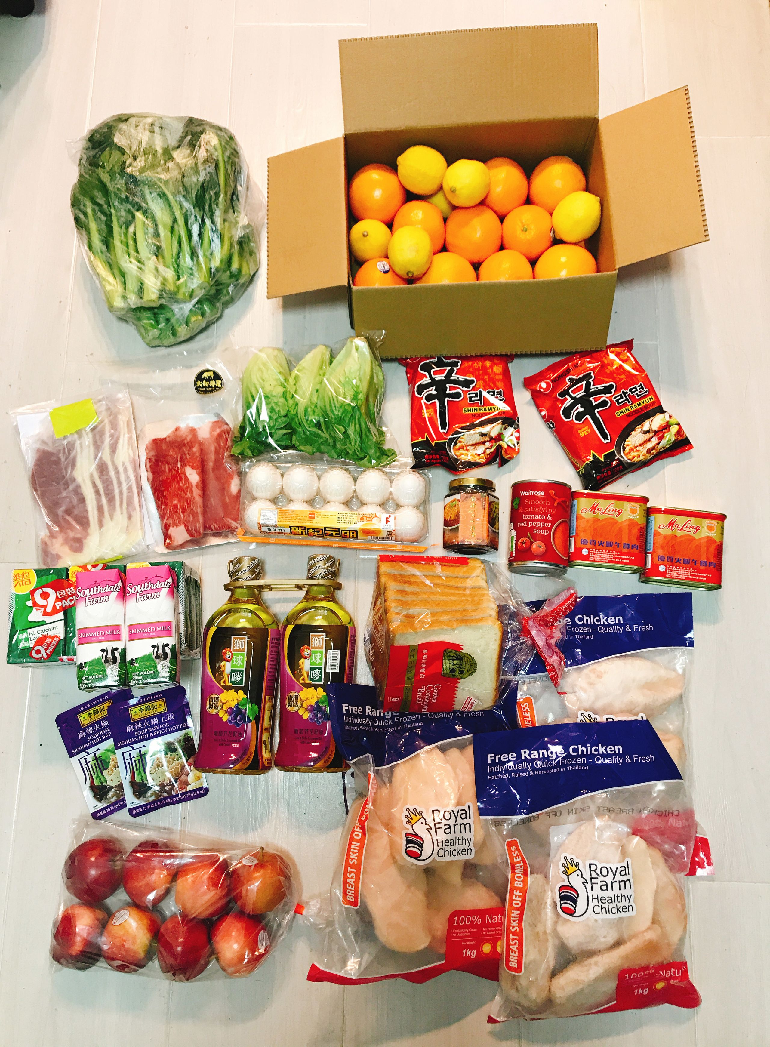「咚咚咚」,有人敲門。「請問是哪位?」沒有人回答,打開門,只能聽到遠處下樓梯的聲音。有點聖誕老人派禮物的感覺,只不過不是藏在襪子裡。除了消毒水和酒精,社區送來了麵包,牛奶,菜芯,雞胸肉,鮮橙,即食麵,午餐肉……應該是足夠一個星期的食物。