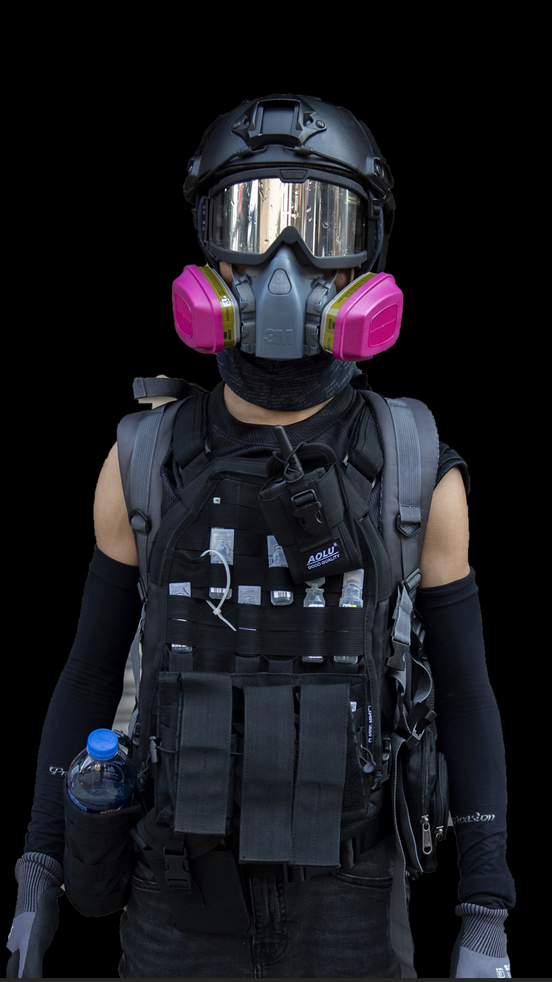 臨行前,我把口罩和護目鏡塞進包里,上面還能隱約看到水炮車留下來的藍色水漬,沒想到,半年多過去了,每天出門和香港示威遊行的裝備還是「同款」。