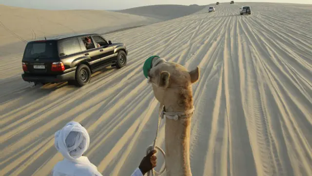 多哈以西,尘土飞扬的平原上,在一个大意是“蛇村”的小地方,农夫阿里·阿尔-贾哈尼给我端上一个锡碗,里面装着刚刚挤好的骆驼奶,还很温乎。