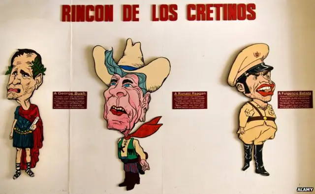 “白痴墙”上,贴着美国共和党总统里根、布什父子的卡通像,与真人尺寸相当。