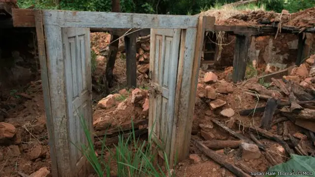 我们爬到山上去看一看萨宾家的老房子。剩下的就是两堵墙了,用木垛子支撑着,看上去很危险。其余的,都在大地震中成了残砖瓦砾。