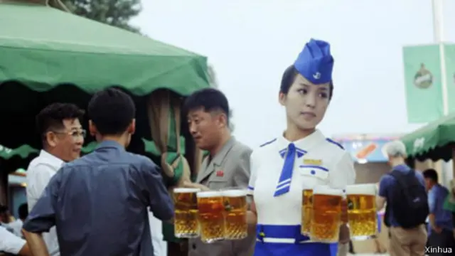 朝鲜电视台的主播在报道平壤首届啤酒节时难掩心中狂喜,高呼:啤酒节表明朝鲜人民的生活充满了幸福和乐观,朝鲜是人民的天堂,是高度文明的社会主义国家……打到美帝国主义及其可耻的走狗……