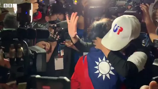 伴随台湾总统选举开票结果逐步出炉,蔡英文与韩国瑜阵营的气氛愈发不同。韩国瑜已在一小时前抵达选举本部,尚未公开进行发言。而蔡英文方面则表示要等韩国瑜发表讲话后再面向外界表态。