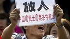 • 钓鱼岛危机导致中国民间反日情绪的高涨。抗议者在日本驻北京使馆前,要求日本释放香港保钓人士。