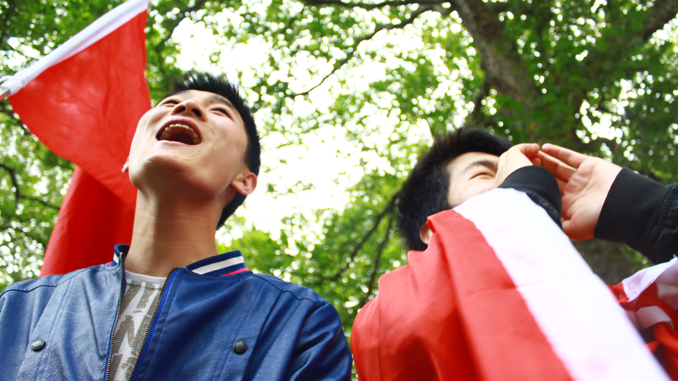 大部示威者是学生,他们带来示威“必备品”---国旗。