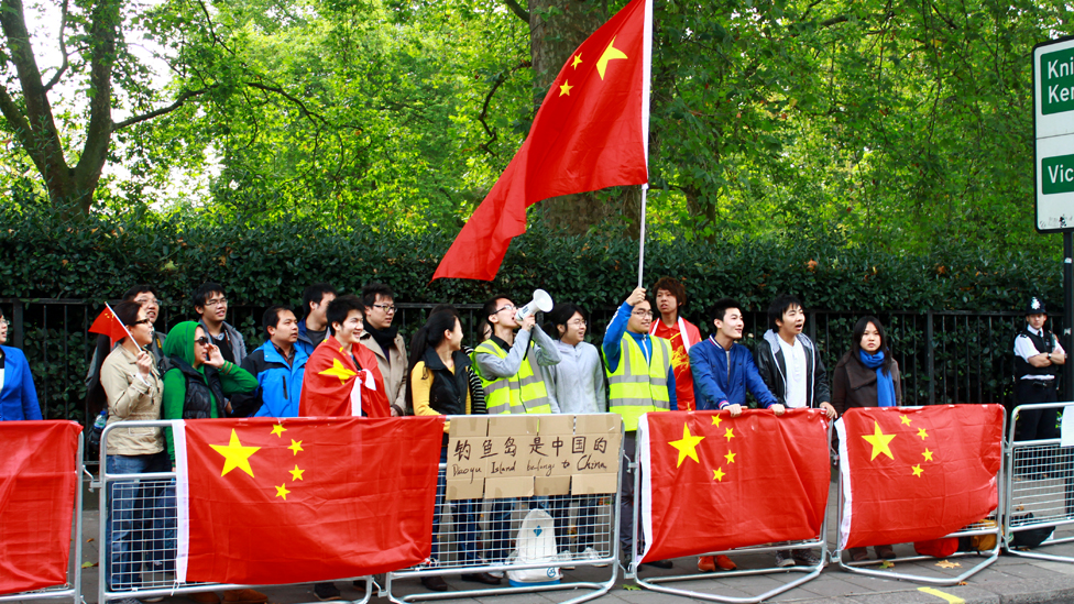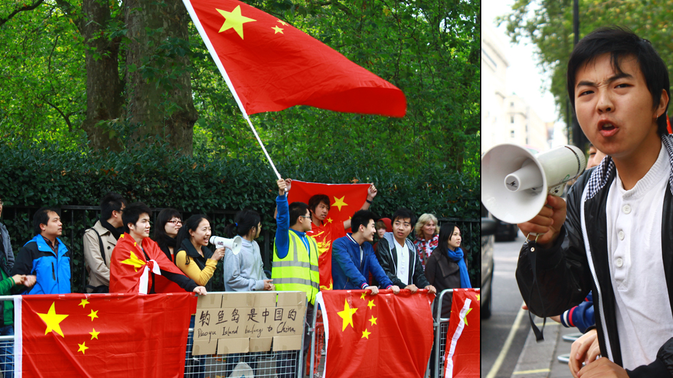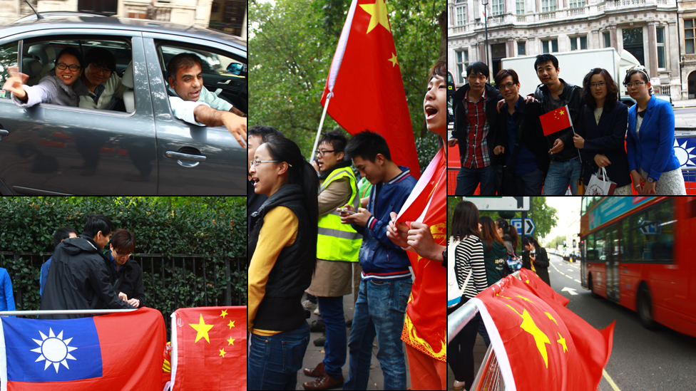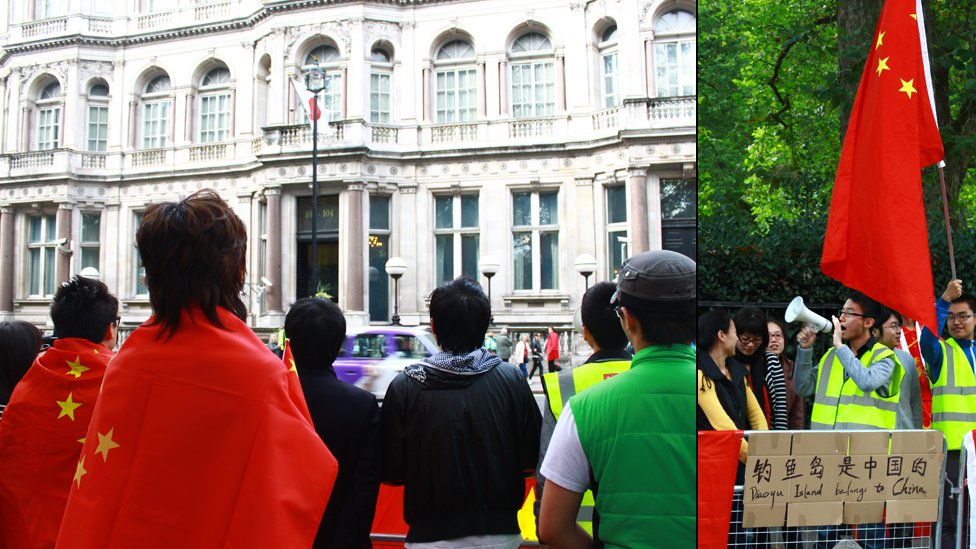 图辑:伦敦华人日本使馆外保钓示威
