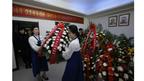• 图片中的女子在中朝边境城市辽宁丹东的朝鲜大使馆为金正日逝世周年准备花圈。 (图片来源:路透社)