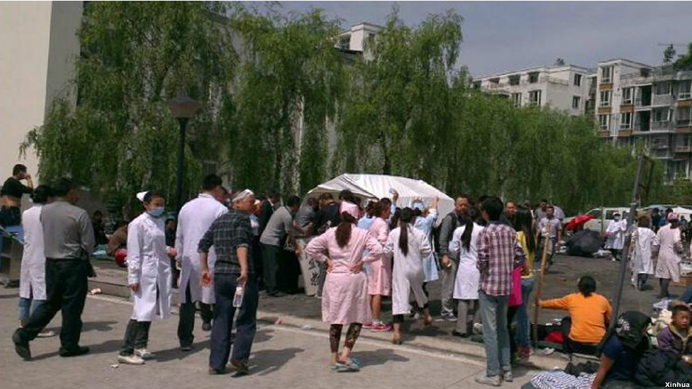 截至4月20日中午12点,雅安地震共发生余震264次,其中两次超过5级。目前,芦山县医院在一处平地搭设帐篷,救治受伤民众。