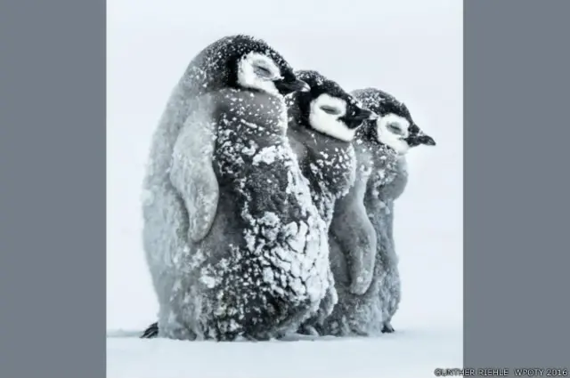 作品名:直面暴风雪。这是德国摄影师GUNTHER RIEHLE在南极拍摄的小皇帝企鹅