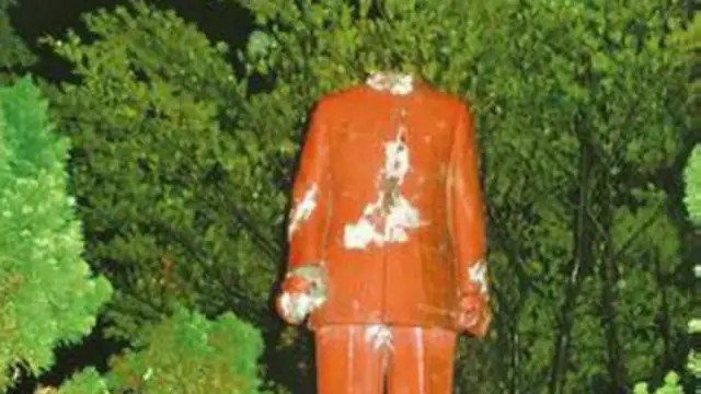 相对于过往二二八纪念日时的零星涂鸭,今年全台各地的蒋介石铜像遭到的则是密集抗议,除了基隆的"蒋公"砍头遭遇外,各地"蒋公"更多的是被挂牌或喷漆。