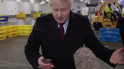 周一,英国独立电视台(ITV)的一名记者试图用手机给约翰逊(Boris Johnson)看这张照片,但约翰逊最初拒绝观看。