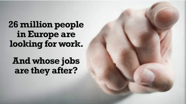广告上还说:“现在欧洲有2600万人在找工作,你说他们想要从谁的手中拿到工作?”。