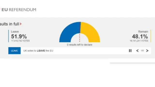 英国周五(24日)欧盟公投结果揭晓,主张脱离欧盟的阵营赢得了多数,其结果英国将退出欧盟。