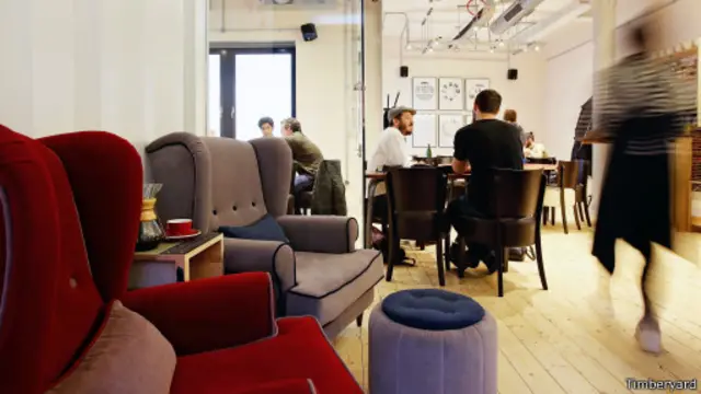 Timberyard 咖啡店看准市场,融合咖啡厅与办公室,让小型企业、自由业者能够租用地底的办公室。