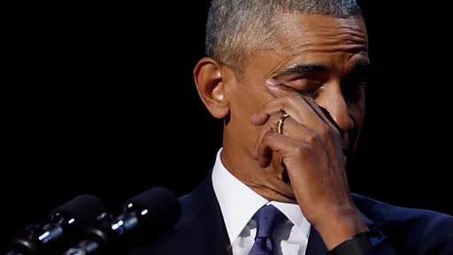 他在2008年也是在芝加哥宣布胜选, 如今他回到这里,向美国人民道别。此前,在一场充满分裂和敌意的选举中,特朗普击败民主党希拉里·克林顿(Hillary Clinton)当选新一任美国总统。
