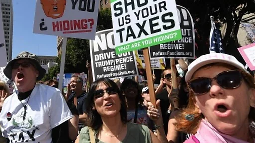 佛蒙特法学院教授珍妮弗·陶布(Jennifer Taub)是游行的其中一名组织者,她在华盛顿的游行上对BBC表示,她发起游行是要回击总统顾问康威(Kellyanne Conway)声称美国人“对总统的税务纪录不感兴趣”的言论。