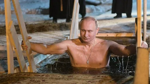(英文小视频。1月19日,东正教主显节传统的洗礼仪式,65岁的普京冒着严寒浸入冰窟)