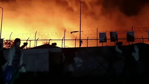 莫里亚营地(Moria Camp;又称莫里亚接待和认证中心)星期二(9月8日)深夜起火,星期三早上扑灭后,当日傍晚再度着火焚烧。营地上帐篷全毁。