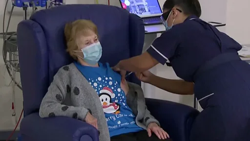 下周将迎来91岁生日的玛格丽特·基南(Margaret Keenan)说,接种疫苗是“提前到来的最好的生日礼物”。
