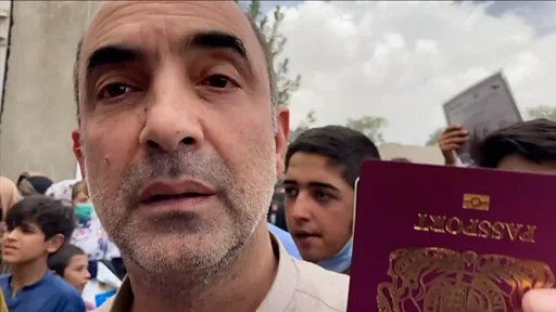 “护送我们的是塔利班。车队前面有一辆轿车开道,后面有一辆压阵。我们到机场时大约是半夜12点半左右。一群一群的人乌泱乌泱地聚在那里,等着逃离那个国家。塔利班在一边开枪,美国人在另一边发射催泪瓦斯控制人群。我们被带到机场北门;那里主要是军用通道。”