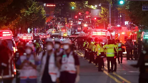 但是官员们现在互相指责。韩国警方表示,他们要求首尔市地铁周六禁止列车在梨泰院站停靠,以限制人群。韩国地铁对此予以否认,称他们在这起致命踩踏事故发生一小时后才收到官方要求。