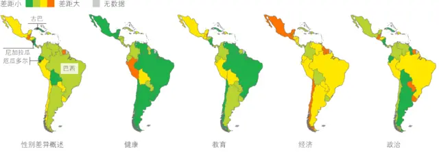 这一地区有性别差距最大的国家,但情况各有不同。
