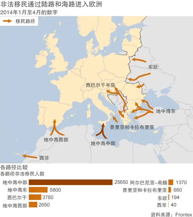 今年迄今为止非法移民人数远超过2011年的同一时期,2011年爆发“阿拉伯之春”,到最后当年总共有14万非法移民到达欧洲。