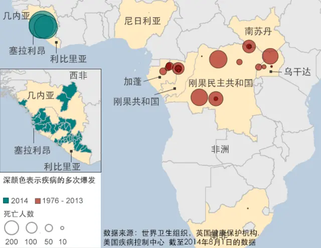 世卫组织公布的数据显示,目前埃博拉病毒疑似和可能感染病例1700多例,930多人死亡,几内亚、利比里亚、塞拉利昂、尼日利亚等西非国家是重灾区。