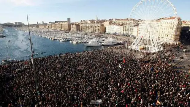 BBC弗格尔·基恩:法国穆斯林人口最多的大城市马赛,数千人也上街游行。北区区长、阿尔及利亚后裔Samia Ghali告诉BBC,游行是为了表述对宽容、共存的支持。