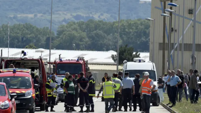 据报现场附近发现了袭击者携带的IS旗帜,并驱车前往工厂,试图引爆。