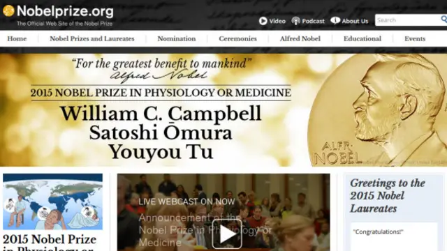 2015年诺贝尔医学奖得主揭晓,共有三位得奖者,包括中国大陆的屠呦呦、爱尔兰的坎贝尔(William C. Campbell)、日本的大村智(Satoshi Omura)。