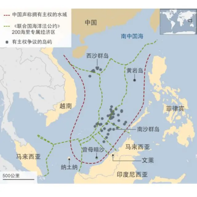 “九段线”将南中国海绝大部分的海域划归其中,并覆盖了文莱、印度尼西亚、马来西亚、菲律宾和越南等依据《联合国海洋法公约》主张拥有的“专属经济区”。