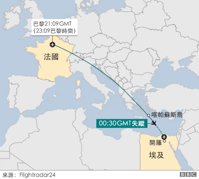 5月19号, 从巴黎飞往开罗的MS804航班在途中失联,机上载有66人。