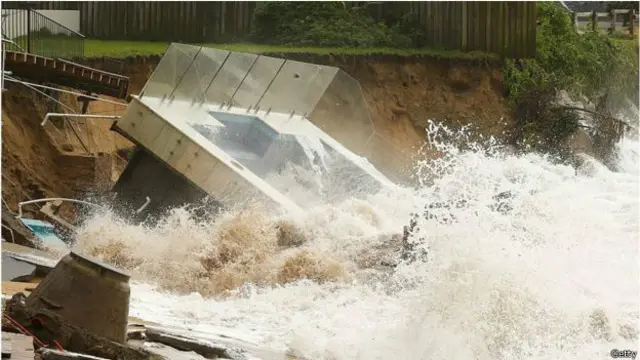 在悉尼,靠近海滩的住宅被特别高的大浪和海潮冲刷,部分倒塌。
