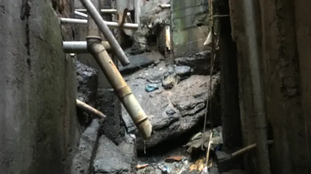 这一户居民,与露出地表的污水排放系统离得很近的住户之一。
