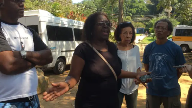 埃米莉娅(中间黑衣者)是带领这个社区对抗搬迁要求的居民。她告诉记者,里约联邦大学的城市规划和建筑学院和社区合作,已经制订出了一个能够让他们留在原来的地方,同时又能完成政府环境改善任务的计划。