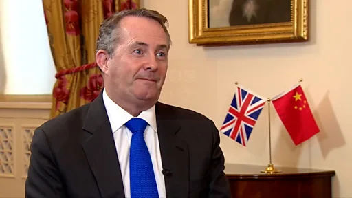英國國際貿易大臣福克斯(Liam Fox)早前抵達中國訪問,在北京與中國商務部部長鐘山會面。
