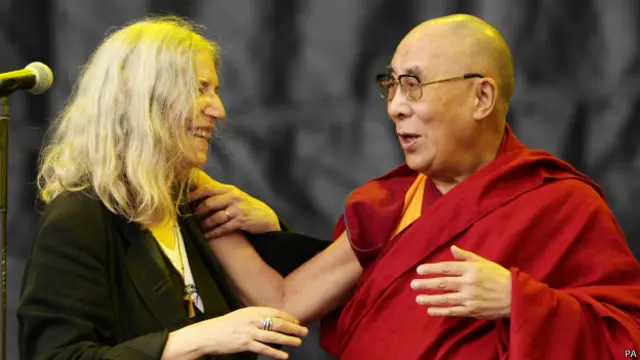 西藏流亡精神領袖達賴喇嘛周日(6月28日)參加英國格拉斯頓伯里音樂節。