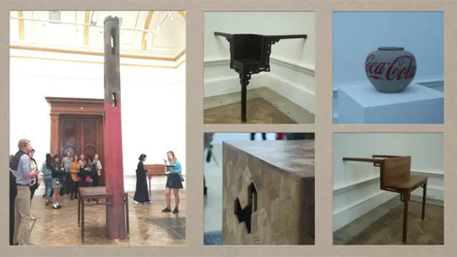 這種略帶戲謔的「古物翻新」手法,在這次展會中一再出現。被變形扭曲的桌椅,木雕與磚牆結合的「來自上海的禮物」,以及清代廟宇的柱子和紅木桌的組合。展現時代進程中新與舊的代謝,並且通過重塑,賦予它們新的意義。