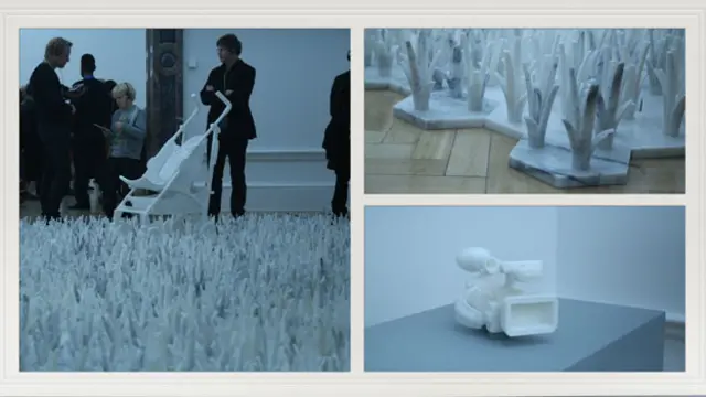 3號展廳聚集了本次展會最多的觀眾,展廳中央是由200噸鋼筋組成的雕塑「直」(Straight)。如果藝術品也有靈魂,「直」的靈魂存活於展廳兩側的白牆上。