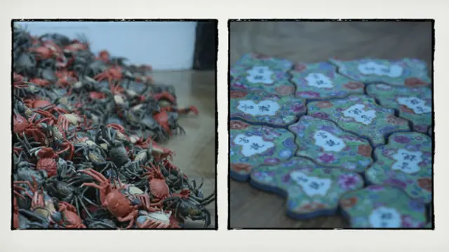 3000多只色彩繽紛的大閘蟹,是艾未未2012年,被政府以沒有許可為由拆除的上海工作室裏的作品。它們被直白地命名為「HE XIE」,和諧社會中被「和諧」掉的聲音,只能化身成了河蟹。