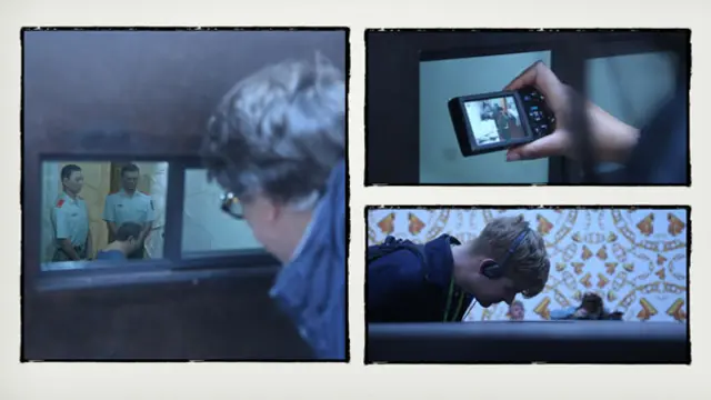 一個金髮的小男孩饒有興致地湊到每個囚室的小窗去看,看完後他問媽媽,為什麼他(艾未未)要被關起來?他的媽媽支吾著:「因為他…恩…因為…」終是沒有能解釋下去。