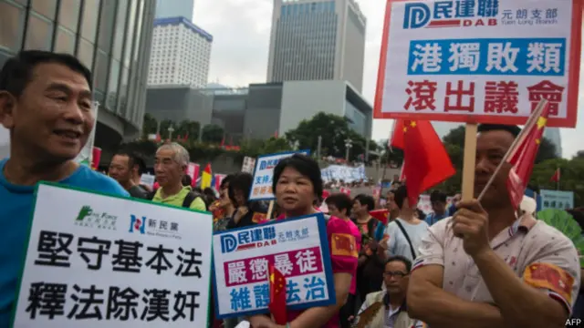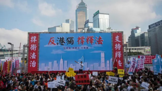 香港《明報》報道,組辦者「反港獨撐釋法聯盟」稱,有超過4萬人參加了今天的集會示威。