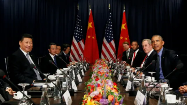 在秘魯首都利馬召開的亞太經合論壇(APEC)峰會期間,中國領導人習近平和即將離任的美國總統奧巴馬舉行會談。