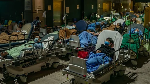 香港醫療體系在崩潰邊緣,社交媒體不斷流傳著病人塞爆醫院的片段,一度有病人需要在嚴寒的天氣下在醫院外等候或接受治療。